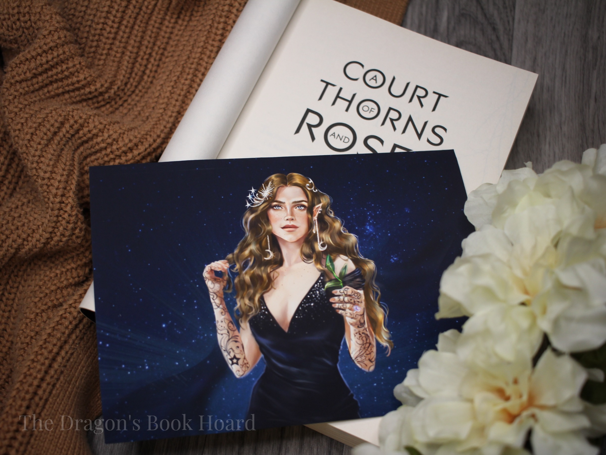 This beautiful 5in x 7in art piece of Feyre, High Lady of the Night Court, is printed on premium matte paper. It is thicker than paper but thinner than standard cardstock making it perfect for framing to hang on your wall or set on a bookshelf.