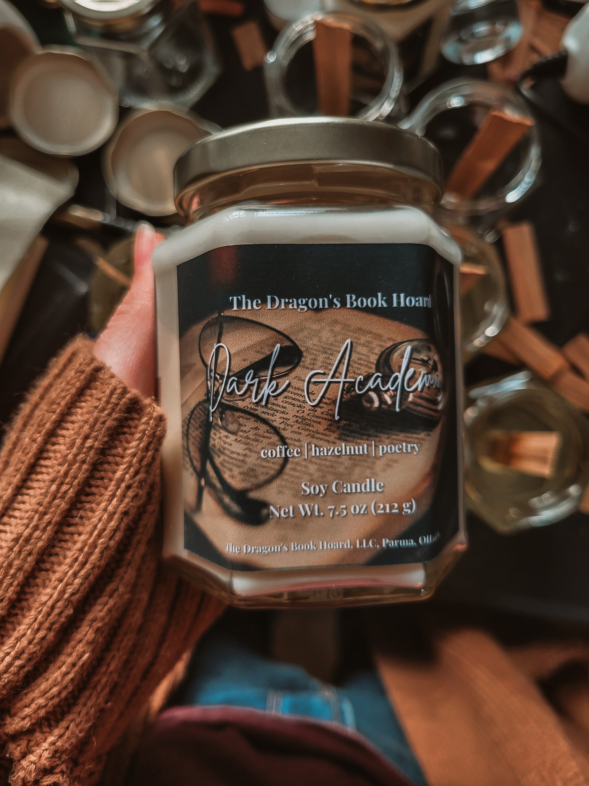 Inspired by broody poets, Gothic architecture, and Classic literature, this candle smells of brewing coffee for those late nights of writing by candlelight.