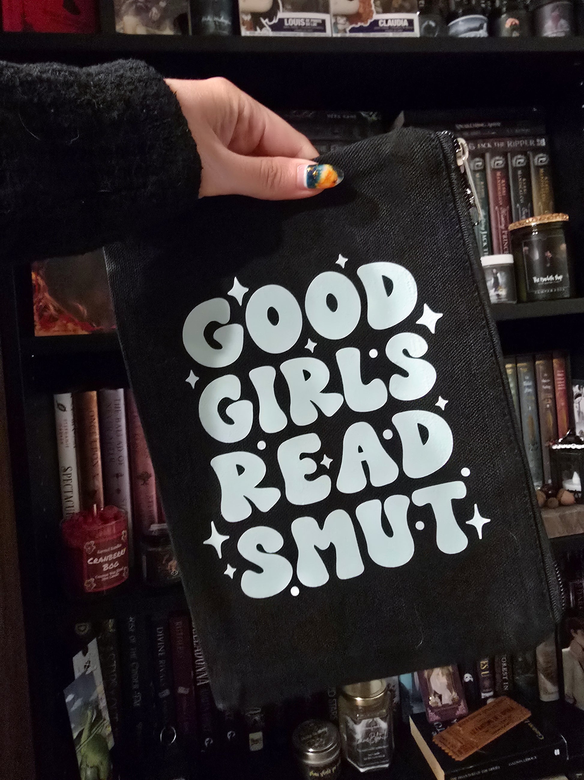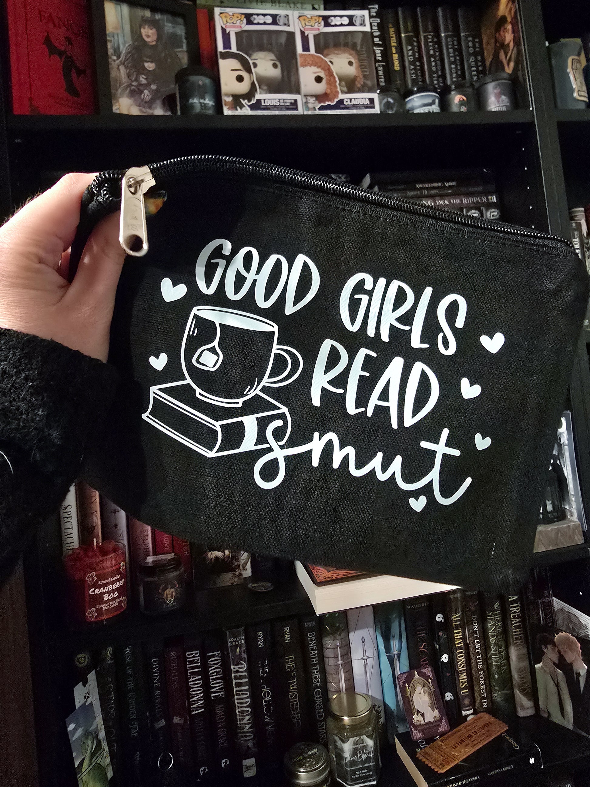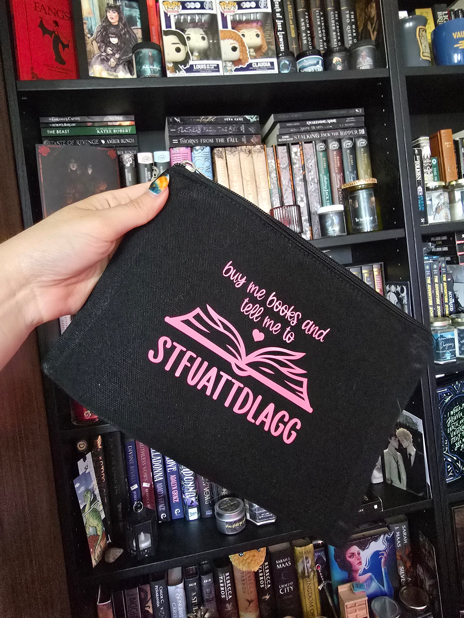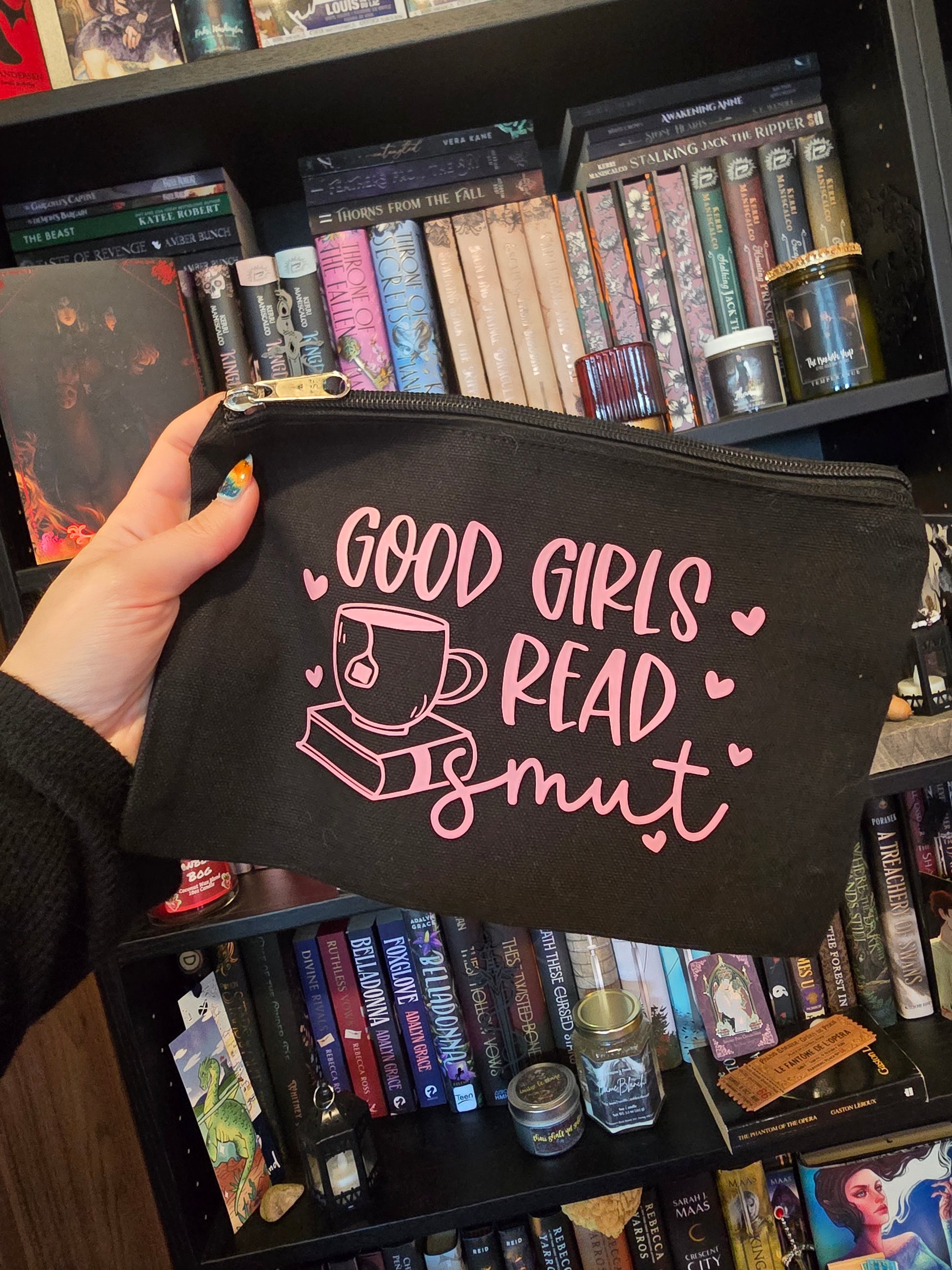 Zipper pouch for all your reading, journaling, or even cosmetic needs! These bags are approximately 6 inches x 9 inches x 2 inches with a silver metal zipper and heat-pressed vinyl designs.