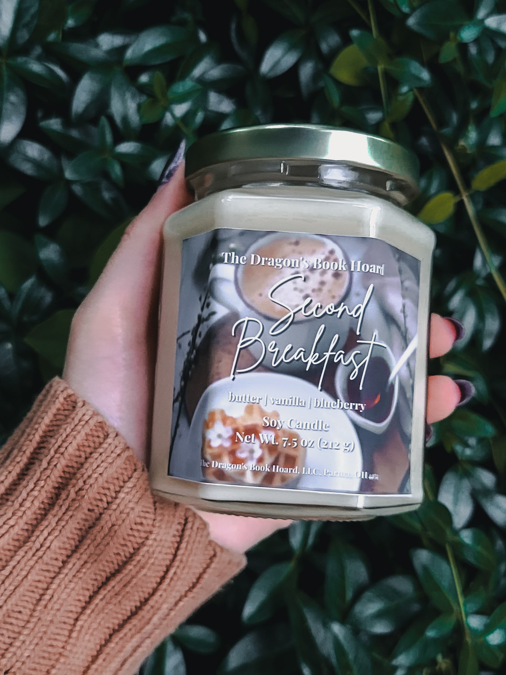 This scent was inspired by one of Tolkien's many meals; Second Breakfast! It smells of warm blueberry pancakes covered in butter.